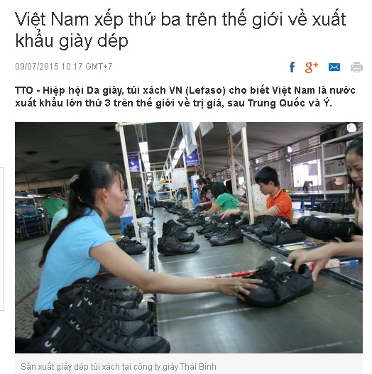 Việt Nam đứng thứ ba thế giới về xuất khẩu giày dép