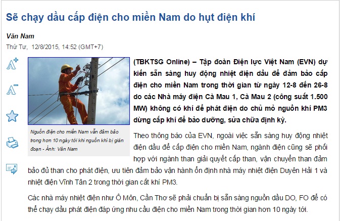 Theo thông báo của EVN, ngoài việc sẵn sàng huy động nhiệt điện dầu để cấp điện cho miền Nam, ngành điện cũng sẽ phối hợp với ngành than giải quyết cấp than, vận chuyển than đảm bảo đủ than cho phát điện, ưu tiên đảm bảo vận hành ổn định nhà máy nhiệt điện Duyên Hải 1 và nhiệt điện Vĩnh Tân 2 trong thời gian cắt khí PM3.