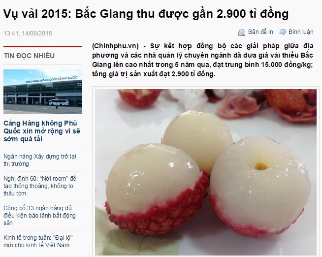 Vụ vải 2015: Bắc Giang thu được gần 2.900 tỉ đồng