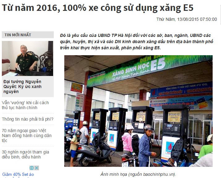 Từ năm 2016, 100% xe công sử dụng xăng E5