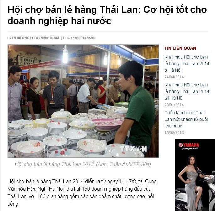 Báo Thông tấn xã điện tử cho biết:. Hội chợ bán lẻ hàng Thái Lan 2014 diễn ra từ ngày 14-17/8, tại Cung Văn hóa Hữu nghị Việt Xô, Hà Nội, thu hút 150 66Win33 tặng code miễn phí hàng đầu của Thái Lan, với 180 gian hàng gồm các sản phẩm chất lượng cao, nổi tiếng.Các sản phẩm được trưng bày tại Hội chợ như thực phẩm, đồ uống, trái cây, đồ gia dụng, hàng dệt may, trang sức, điện gia dụng, sản phẩm chăm sóc Đăng nhập Win 33 và làm đẹp sản phẩm, thiết bị ôtô, xe đạp và phụ kiện, đồ trang trí và quà tặng lưu niệm, thiết bị điện và hàng không.