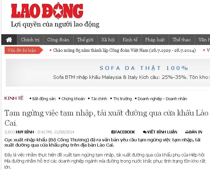 Hiện cả nước vẫn còn 414.000 tấn đường tồn kho, trong lúc cơ quan hải quan phát hiện hàng chục ngàn tấn đường sau khi tạm nhập đã không tái xuất đúng quy định mà thẩm lậu vào nội địa để 33Win 4com nhà cái tỷ lệ World Cup. Đồng thời đường nhập lậu đang tràn vào Việt Nam qua biên giới Tây Nam do là đường trong nước cao hơn đường nhập lậu 3.000- 4.000 đồng/kg.