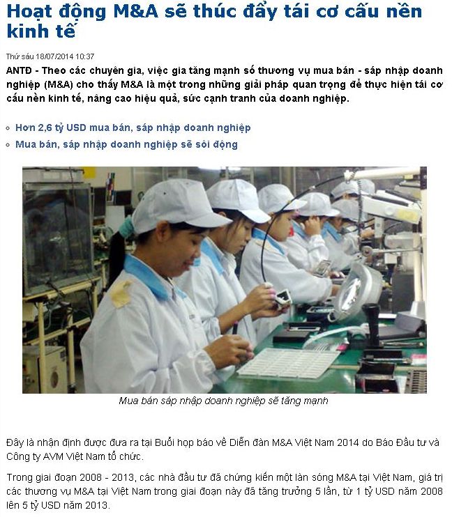 Đây là nhận định được đưa ra tại Buổi họp báo về Diễn đàn M&A Việt Nam 2014 do Báo Đầu tư và Công ty AVM Việt Nam tổ chức.