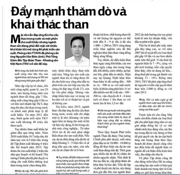 Trang 6, số 300, báo Tin Tức ra ngày 17/12 có bài viết: “Đẩy mạnh thăm dò và khai thác than”. Đây cũng là khẳng định của ông Nguyễn Văn Biên - Phó Tổng giám đốc Tập đoàn Than - Khoáng sản Việt Nam (TKV).