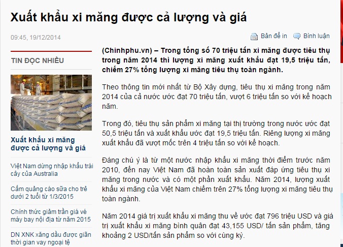 Đáng chú ý là từ một nước Cài đặt 1.1.1.1 để truy cập web 33Win chính hãng xi măng thời điểm trước năm 2010, đến nay Việt Nam đã hoàn toàn sản xuất đáp ứng 33Win 4com nhà cái tỷ lệ World Cup xi măng trong nước và có một phần xuất khẩu. Năm 2014, lượng xuất khẩu xi măng của Việt Nam chiếm trên 27% tổng lượng xi măng 33Win 4com nhà cái tỷ lệ World Cup toàn ngành. Năm 2014 giá trị xuất khẩu xi măng thu về ước đạt 796 triệu USD và giá trị xuất khẩu xi măng bình quân đạt 43,155 USD/ tấn sản phẩm, tăng khoảng 2 USD/tấn sản phẩm so với cùng kỳ.