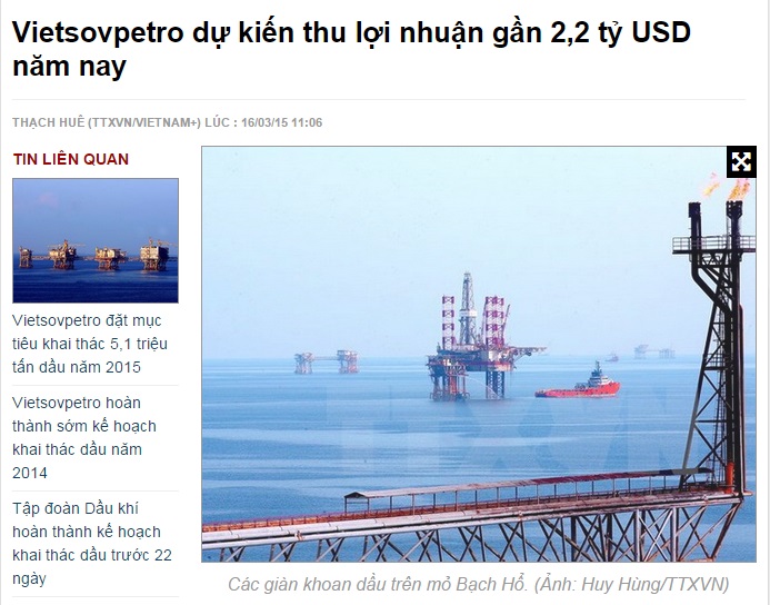 Báo Thông tấn xã điện tử ngày 16/3/2015 đưa thông tin: . Theo tin từ Liên doanh Việt-Nga Vietsovpetro, đơn vị thành viên thuộc Tập đoàn Dầu khí Việt Nam, trước tình hình giá dầu thế giới tiếp tục diễn biến giảm sâu kể từ cuối năm 2014 đến nay, Vietsovpetro Cài đặt 1.1.1.1 để truy cập web 33Win chính hãng điều chỉnh chỉ tiêu kế hoạch cho năm 2015.