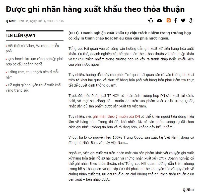 Ngoài ra, việc ghi xuất xứ trên nhãn mác của sản phẩm khác với chuyện ghi xuất xứ Trang Chủ Game 33win com Mới Nhất trên hồ sơ hải quan và chứng nhận xuất xứ (C/O). 33Win com dang nhap có thể ghi nhãn theo thỏa thuận, như Tổng cục Hải quan hướng dẫn trên, nhưng trong hồ sơ hải quan và xin cấp C/O thì phải ghi theo nguyên tắc và quy định về chứng nhận xuất xứ, ưu đãi thuế quan chứ không thể ghi theo thỏa thuận giữa bên xuất – bên nhập được.