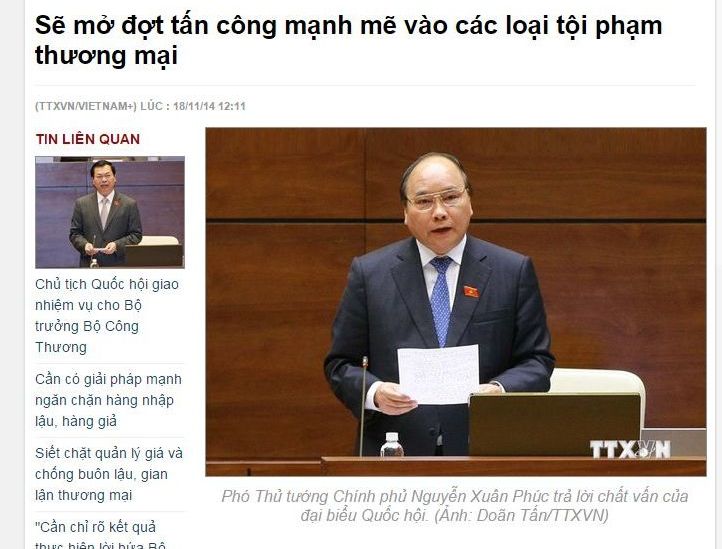 Ngày 18/11, Thông tấn xã điện tử đưa tin: . Theo đó, bài báo cho hay, phát biểu mở đầu phiên chất vấn của Quốc hội sáng 18/11, Phó Thủ tướng Nguyễn Xuân Phúc - Trưởng ban Ban Chỉ đạo 33Win47 khuyến mãi hấp dẫn 389 về phòng chống buôn lậu, gian lận Trang Chủ Game 33win com Mới Nhất yêu cầu các bộ, các địa phương phải vào cuộc bằng các giải pháp cụ thể, các cơ quan tố tụng điều tra truy tố, xét xử nghiêm minh, kịp thời loại tội phạm này.