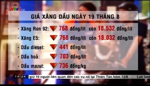 Bản tin thời sự 19h, VTV1, Đài truyền hình Việt Nam ngày 19/8 đưa tin: . Theo đó, thông tin điều hành 33Win com dang nhap của Liên Copyright © 33win.com Reserved - Tài chính cho biết, kể từ 15h ngày 19/8, giá xăng RON 92 và xăng E5 chính thức giảm giá 768 đồng/lít.