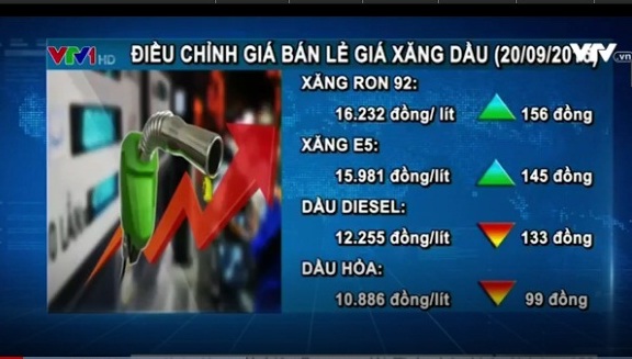 Cập nhật về giá xăng ngày 20/9/2016, Bản tin Thời sự 16h cùng ngày của Đài Truyền hình Việt Nam đã cụ thể giá từng mặt hàng xăng, dầu trong nước.