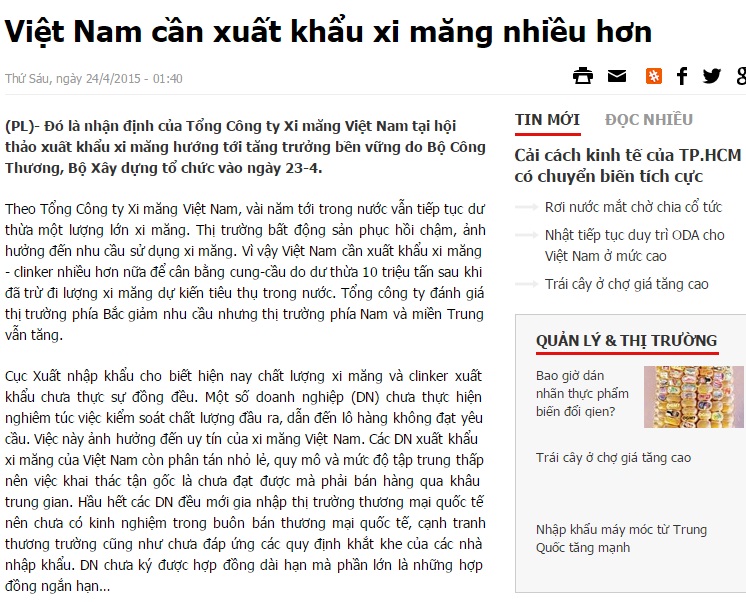 Việt Nam cần xuất khẩu xi măng nhiều hơn