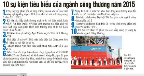 10 sự kiện tiêu biểu của ngành Công Thương năm 2015