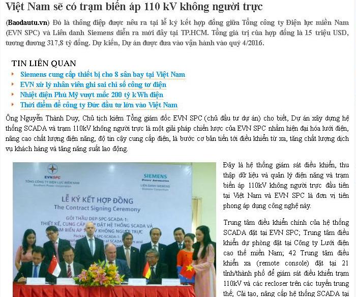 Đây là hệ thống giám sát điều khiển, thu thập dữ liệu và quản lý điện năng và trạm biến áp 110kV không người trực đầu tiên tại Việt Nam và EVN SPC là đơn vị tiên phong áp dụng công nghệ này.