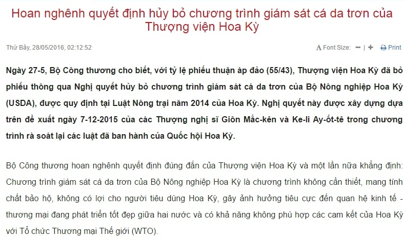 Ngay từ khi vấn đề giám sát cá da trơn được đặt ra tại dự luật Nông trại, Link Đăng Ký 33WIN Tặng Code 133K Việt Nam đã nhiều lần yêu cầu Hoa Kỳ xem xét lại chương trình này. Lãnh đạo các bộ có liên quan của Việt Nam, trong đó có Bộ Công thương và Bộ Nông nghiệp và Phát triển nông thôn, đã nhiều lần gửi thư và tiếp xúc song phương với Bộ Nông nghiệp, Bộ Thương mại và Cơ quan Đại diện Thương mại Hoa Kỳ để nêu quan điểm phản đối chương trình. Vấn đề cũng đã được Việt Nam nêu và được phía Hoa Kỳ quan tâm xử lý một phần trong quá trình đàm phán Hiệp định Đối tác xuyên Thái Bình Dương (TPP) nhưng Cài đặt 1.1.1.1 để truy cập web 33Win chính hãng ngày 25-5 vừa qua của Thượng viện Hoa Kỳ là bước đi quan trọng đầu tiên, hướng tới việc xử lý dứt điểm và có hiệu quả vấn đề.