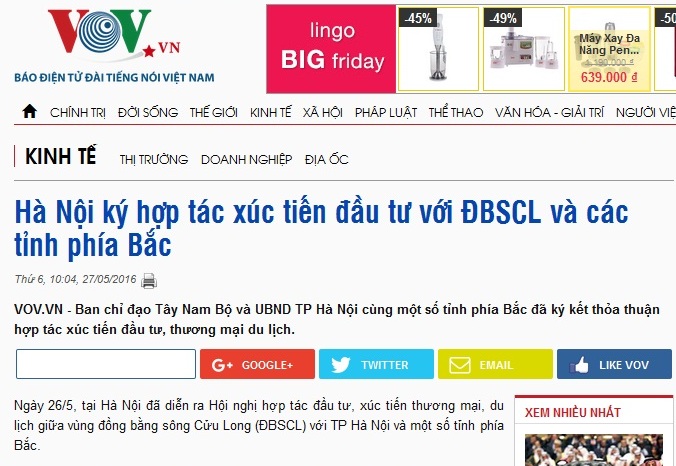 Theo ghi nhận của Phóng viên Báo điện tử Đài tiếng nói Việt Nam, ngày 27/5, hợp tác đầu tư, xúc tiến Trang Chủ Game 33win com Mới Nhất, du lịch giữa vùng đồng bằng sông Cửu Long (ĐBSCL) với TP Hà Nội và một số tỉnh phía Bắc đã diễn ra tại Hà Nội chiều ngày 26/5/2016.