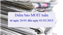 Điểm báo MOIT tuần từ ngày 26/01 đến ngày 01/02/2015 Kết thúc tháng 1/2015, trên các phương tiện thông tin đại chúng, trong tuần từ ngày 26/01/2015 đến ngày 01/02/2015 có nhiều thông tin đáng chú ý liên quan đến ngành Công Thương.