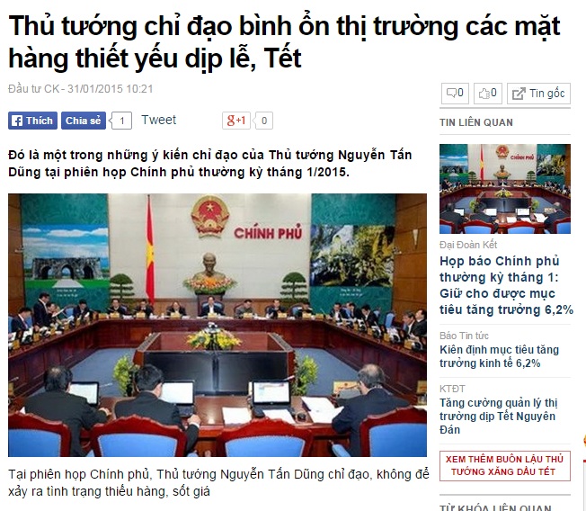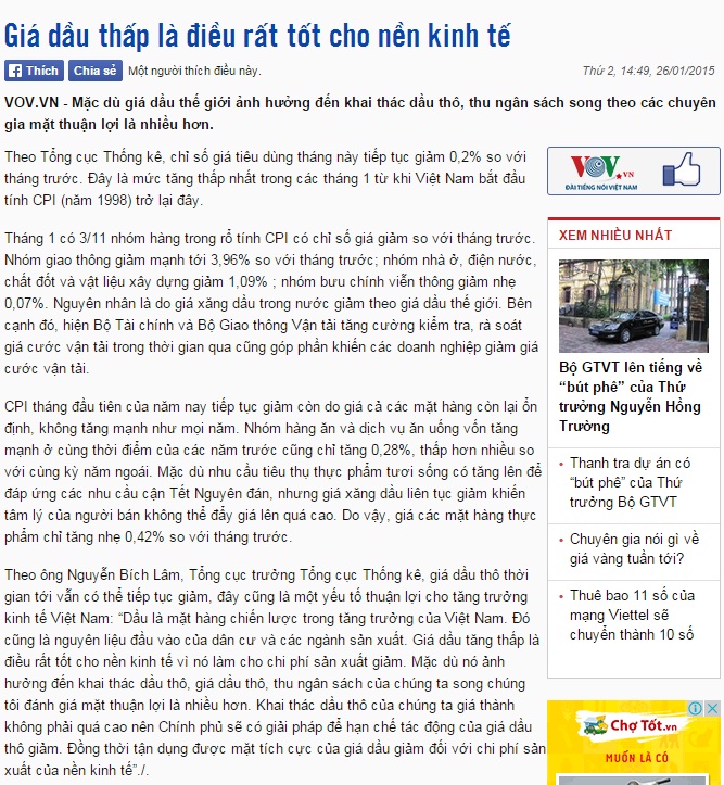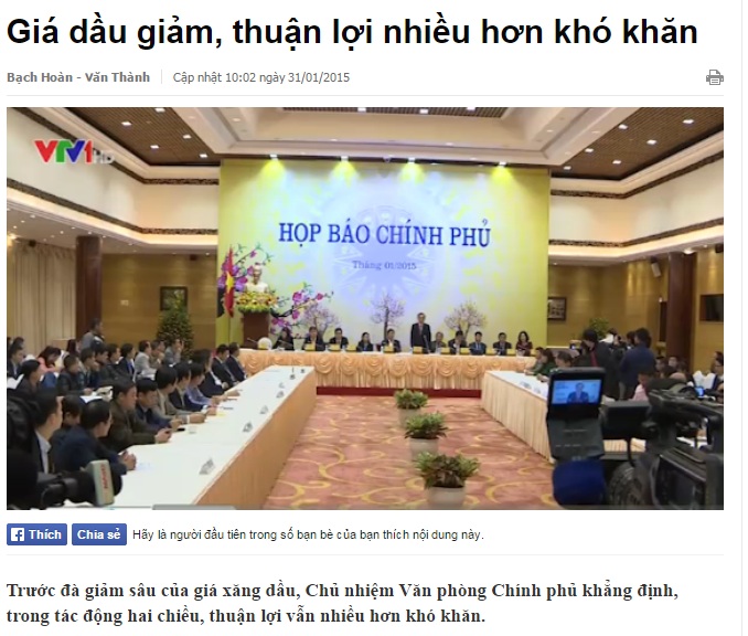 Cũng liên quan đến giá dầu giảm, báo Điện tử Đài Truyền hình Việt Nam ngày 31/01/2015 cho biết: .