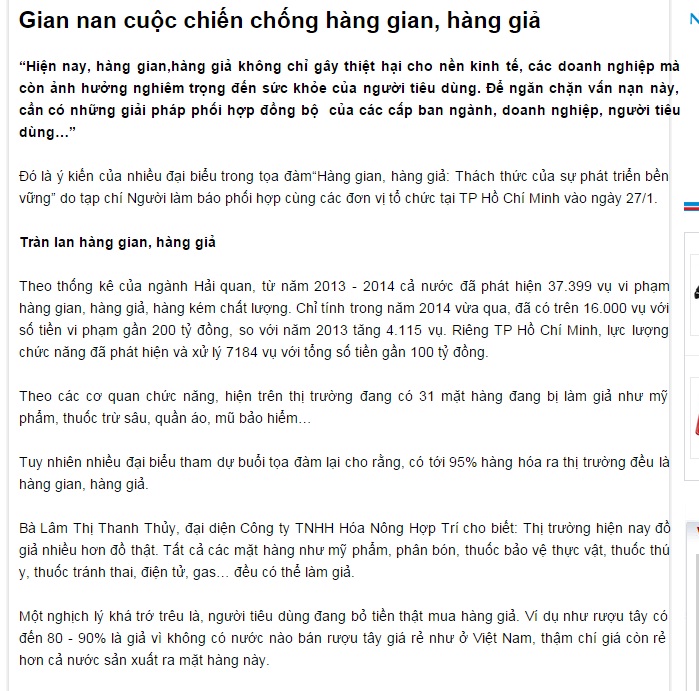 Báo Tin Tức điện tử ngày 28/01/2015 có bài viết: . Theo thống kê của ngành Hải quan, từ năm 2013 - 2014 cả nước đã phát hiện 37.399 vụ vi phạm hàng gian, hàng giả, hàng kém chất lượng. Chỉ tính trong năm 2014 vừa qua, đã có trên 16.000 vụ với số tiền vi phạm gần 200 tỷ đồng, so với năm 2013 tăng 4.115 vụ. Riêng TP Hồ Chí Minh, lực lượng chức năng đã phát hiện và xử lý 7184 vụ với tổng số tiền gần 100 tỷ đồng. Một nghịch lý khá trớ trêu là, người 66Win33 link đăng ký tài khoản đang bỏ tiền thật mua hàng giả. Ví dụ như rượu tây có đến 80 - 90% là giả vì không có nước nào bán rượu tây giá rẻ như ở Việt Nam, thậm chí giá còn rẻ hơn cả nước sản xuất ra mặt hàng này.