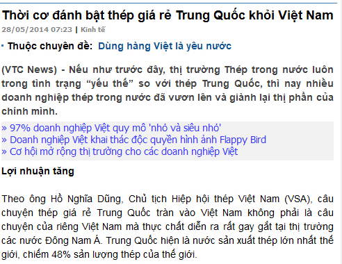 Là nhan đề bài viết trên ngày 28/5. Theo đó, bài báo dẫn chứng, nếu như trước đây, thị trường thép trong nước luôn trong tình trạng “yếu thế” so với thép Trung Quốc, thì nay nhiều 66Win33 tặng code miễn phí thép trong nước đã vươn lên và giành lại thị phần của chính mình.