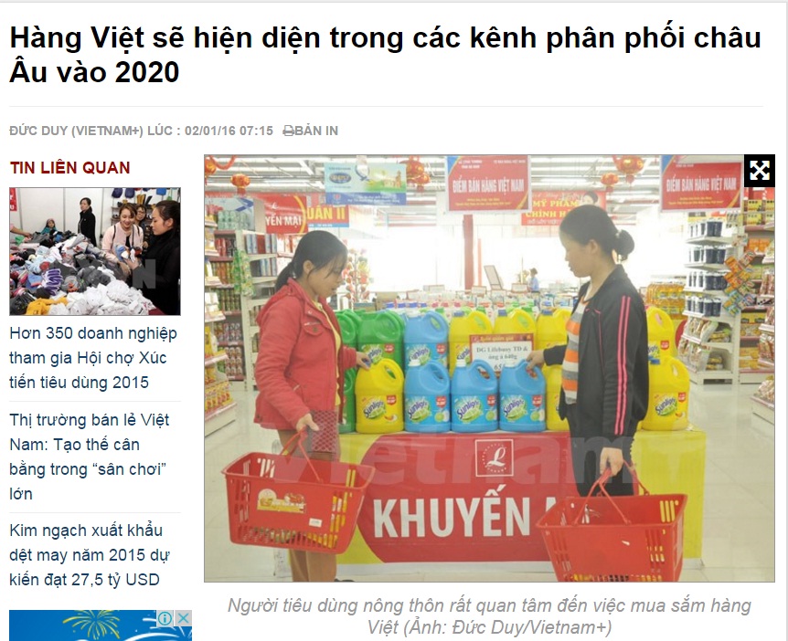 Hàng Việt sẽ hiện diện trong các kênh phân phối châu Âu vào 2020