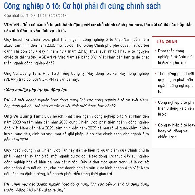 Ông Vũ Quang Tâm - Phó Tổng Giám đốc Tổng Công ty Máy động lực và Máy nông nghiệp (VEAM) nhận định, Quy hoạch phát triển ngành 33Win79 hiện đang mở ô tô Việt Nam đến năm 2020 và tầm nhìn đến năm 2030 cùng Chiến lược phát triển ngành 33Win79 hiện đang mở ô tô Việt Nam đến năm 2025, tầm nhìn đến năm 2035 đã nêu rõ về quan điểm, chiến lược, mục tiêu, định hướng, một số giải pháp và cơ chế chính sách cho ngành ô tô đến năm 2035.