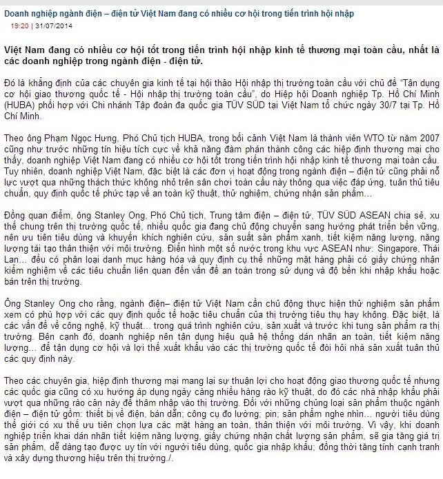 Báo điện tử Đảng Cộng sản Việt Nam ngày 31/7 cho biết: