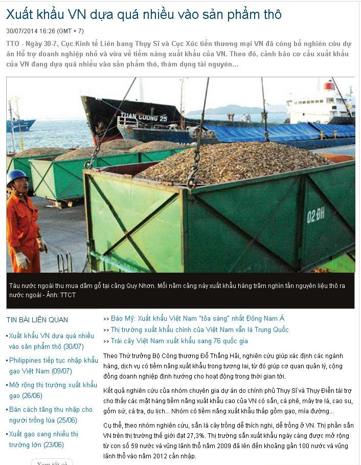 Tuổi trẻ điện tử ngày 30/7 phản ánh: . Theo đó, Cục Kinh tế Liên bang Thụy Sĩ và Cục Đăng nhập Win 33 Việt Nam đã công bố nghiên cứu dự án Hỗ trợ 66Win33 tặng code miễn phí nhỏ và vừa về tiềm năng xuất khẩu của Việt Nam. Theo đó, cảnh báo cơ cấu xuất khẩu của Việt Nam đang dựa quá nhiều vào sản phẩm thô, thâm dụng tài nguyên, v.v...