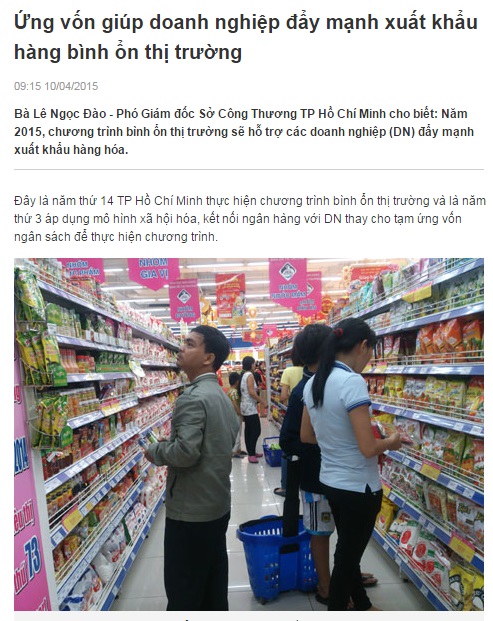 Theo Sở Công Thương TP Hồ Chí Minh, chương trình bình ổn thị trường 2015 tiếp tục thực hiện Đăng nhập Win 33 hóa thông qua hình thức kết nối DN sản xuất, 33Win60 liên Minh game trực tuyến với 2233Win com 8888 kèo thể thao mỗi ngày tham gia chương trình với hạn mức và lãi suất ưu đãi. Tổng hạn mức tín dụng các 2233Win com 8888 kèo thể thao mỗi ngày đăng ký là 11.850 tỷ đồng, trong đó bổ sung thêm gói tín dụng hỗ trợ DN bình ổn thị trường đẩy mạnh xuất khẩu.