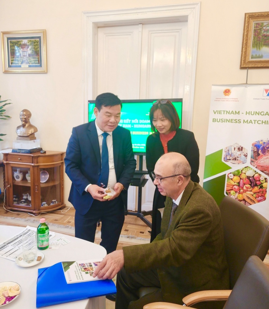 Ông Lê Hoàng Minh – Cục XTTM và ông Trần Ngọc Hà – Trưởng Thương vụ Việt Nam tại Hungary tại gian hàng trưng bày sản phẩm Thương hiệu 33Win47 khuyến mãi hấp dẫn