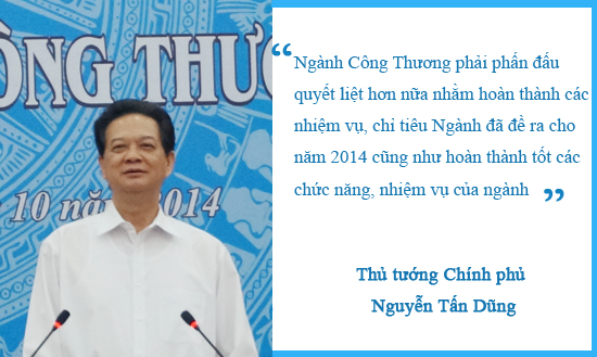 Thủ tướng nhấn mạnh: “Ngành Công Thương phải phấn đấu quyết liệt hơn nữa nhằm hoàn thành các nhiệm vụ, chỉ tiêu Ngành đã đề ra cho năm 2014 cũng như hoàn thành tốt các chức năng, nhiệm vụ của Ngành”.