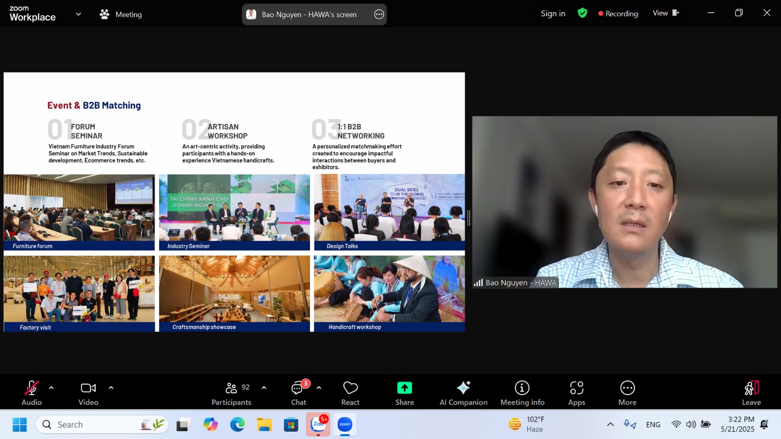 Hợp tác thông qua hội chợ chuyên ngành, ông Nguyễn Hoài Bảo, Phó Chủ tịch kiêm Tổng Thư ký Hiệp hội Mỹ nghệ và Chế biến gỗ TP.HCM (HAWA), trình bày về cơ hội hợp tác thông qua các hội chợ như HAWA và WOFX, tạo điều kiện kết nối 66Win33 tặng code miễn phí hai nước.