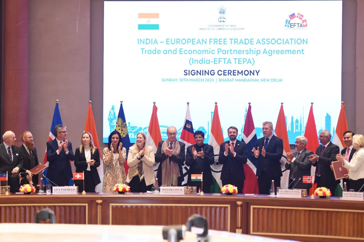 Ngày 10/3/2024, tại thủ đô New Delhi của Ấn Độ, Hiệp hội Trang Chủ Game 33win com Mới Nhất tự do châu Âu EFTA (gồm 4 nước thành viên là Iceland, Liechtenstein, Na Uy, Thụy Sỹ) và Ấn Độ đã ký kết hiệp định Trang Chủ Game 33win com Mới Nhất tự do, có tên gọi đầy đủ là Hiệp định Đối tác Kinh tế và Thương mại TEPA.