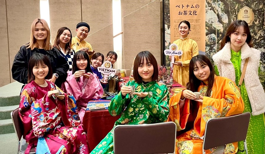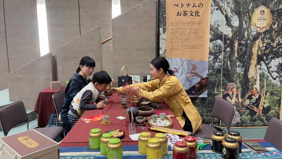 Nhiều vị khách Nhật vô cùng bất ngờ với cách người Việt pha trà và thưởng trà. “Vị trà của hai nước có sự khác biệt nhưng đều rất ngon”, một vị khách bày tỏ. Ảnh: Bộ Ngoại giao Việt Nam.