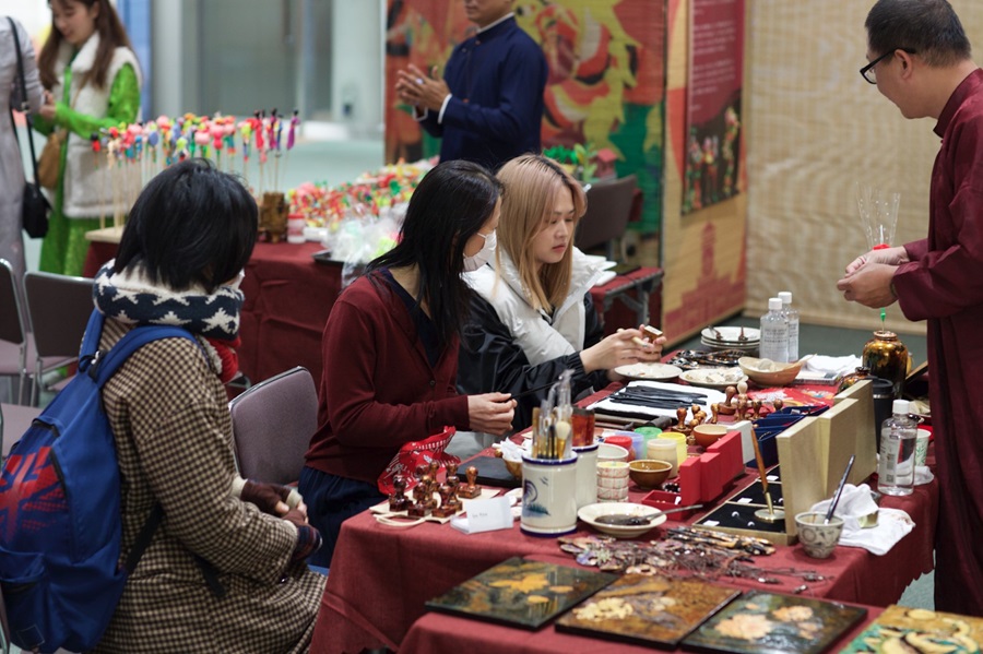Khách tham quan vô cùng thích thú khi được tự tay nặn những chiếc tò he của riêng mình. Ảnh: Bộ Ngoại giao Việt Nam.
