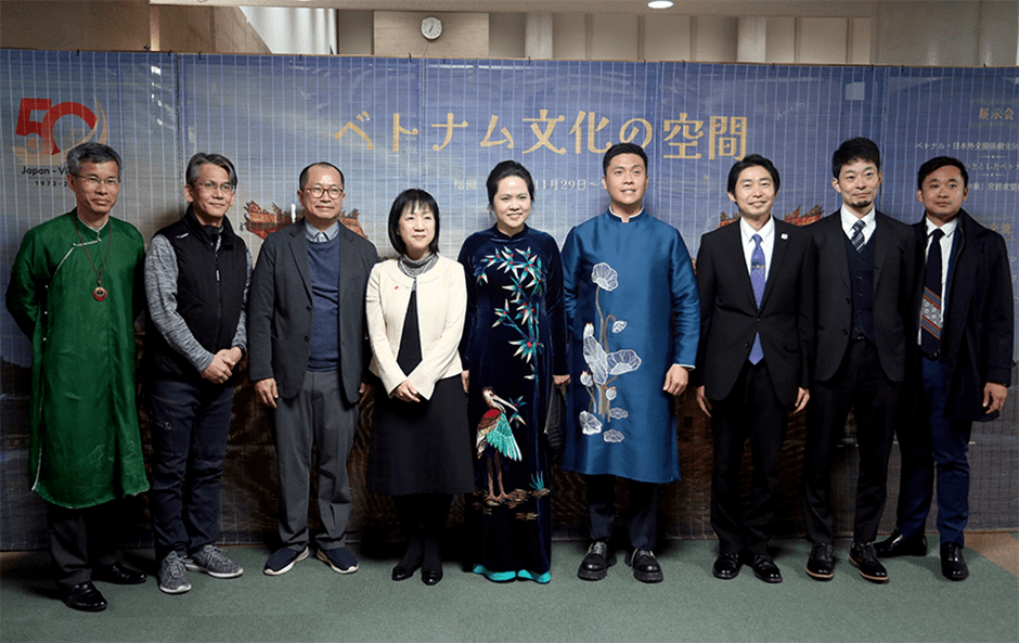 Bà Watanabe Aya, Trưởng Ban quốc tế tỉnh Fukuoka chia sẻ cảm nghĩ: “Chương trình thực sự ấn tượng với nhiều loại nhạc cụ và tiết mục âm nhạc đặc sắc. Đây cũng là cơ hội để chúng tôi biết thêm nhiều nét văn hóa truyền thống như: Sơn mài khắc, Tò he, tranh Đông Hồ”. Ảnh: Bộ Ngoại giao Việt Nam.