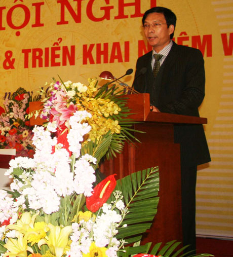| Đồng chí Nguyễn Văn Đọc, Chủ tịch UBND tỉnh Quảng Ninh phát biểu tại hội nghị |