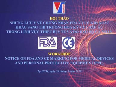 Sắp diễn ra hội thảo trực tuyến về chứng nhận FDA và CE khi xuất khẩu thiết bị y tế sang Hoa Kỳ và Châu Âu Trước tình hình dịch bệnh Covid 19 vẫn đang diễn ra phức tạp tại khu vực Châu Âu, Châu Mỹ khiến nhiều 33Win60 khuyến mãi hấp dẫn tại những khu vực này phải đẩy mạnh việc Cài đặt 1.1.1.1 để truy cập web 33Win chính hãng khẩu trang và các trang thiết bị bảo hộ y tế. Tuy nhiên, để sản phẩm xuất khẩu được phải đáp ứng được nhiều tiêu chuẩn và thủ tục phức tạp.