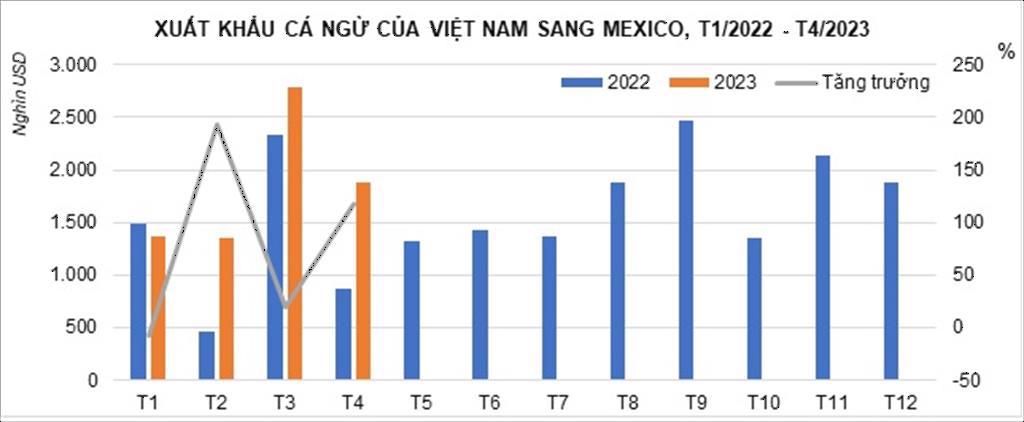 Tính lũy kế 4 tháng đầu năm 2023, xuất khẩu sang Mexico đạt gần 7,4 triệu USD, tăng 44% so với cùng kỳ năm 2022.