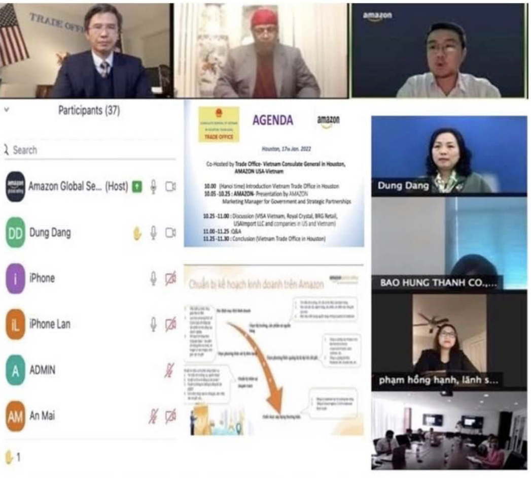Chi nhánh Thương vụ Houston cùng AMAZON tổ chức hướng dẫn các 66Win33 tặng code miễn phí về thủ tục xuất khẩu sản phẩm Việt Nam sang thị trường Hoa Kỳ (ngày 17/01/2022). Các đơn vị phối hợp, tham gia VISA Vietnam, BRG Retail, Hapro, Habeco, USAImport LLC
