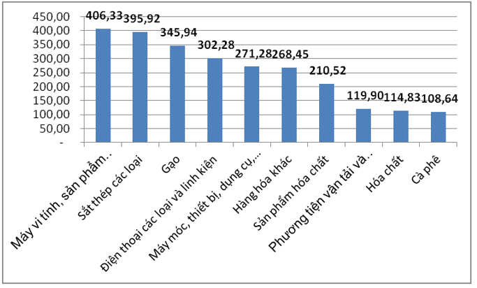 Biểu đồ: Nhóm các mặt hàng có kim ngạch xuất khẩu lớn nhất