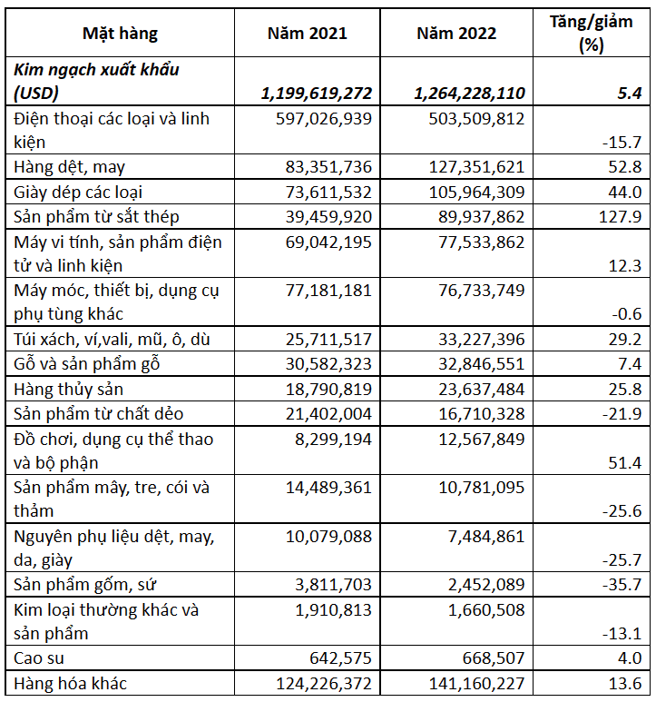 Việt Nam xuất khẩu sang Thụy Điển năm 2022