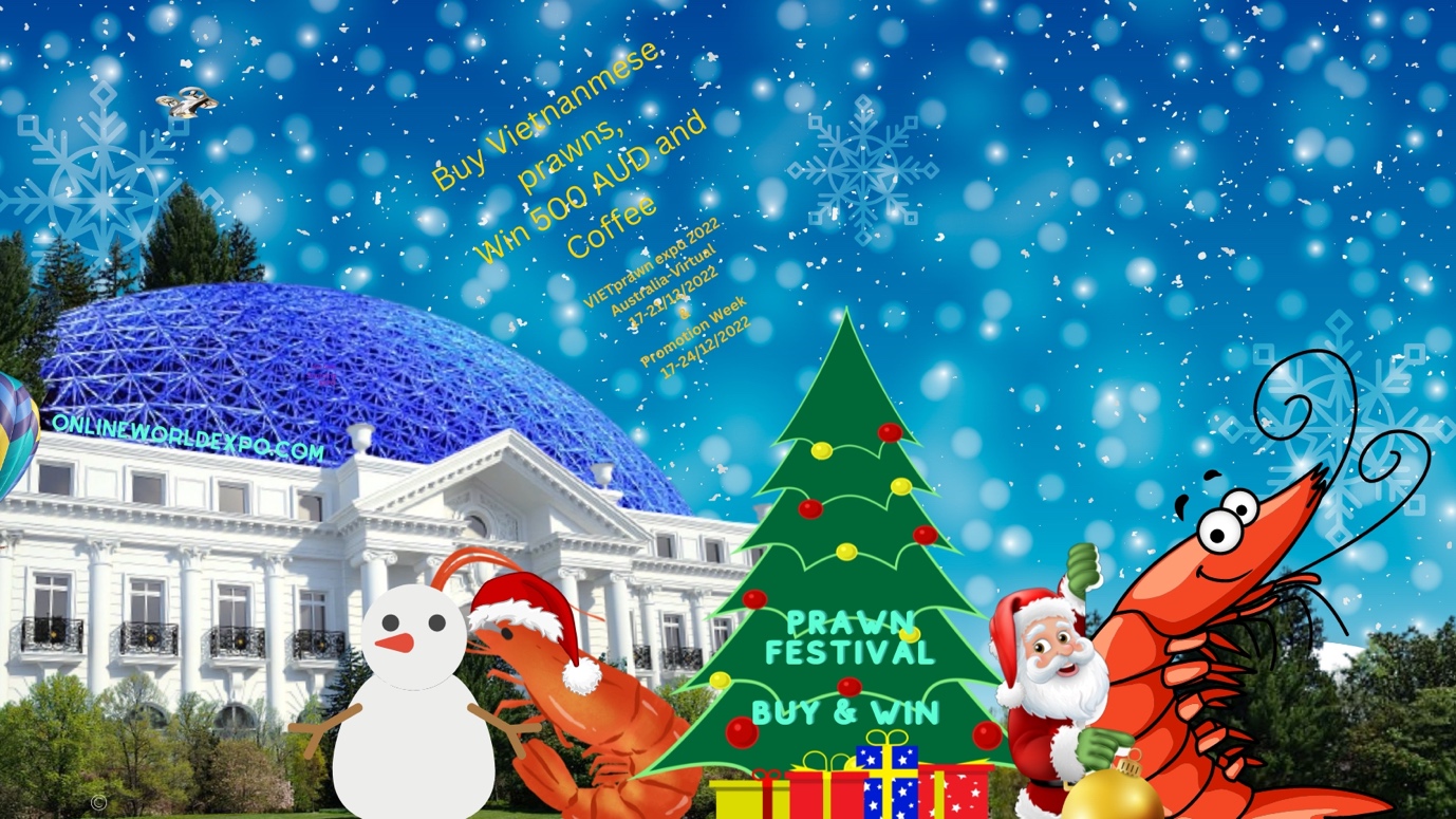 Poster quảng bá khuyến mãi bốc thăm trúng thưởng khi mua tôm Việt trong mùa Giáng sinh cuối năm và giới thiệu doanh xuất khẩu tôm chuẩn bị cho mùa Cài đặt 1.1.1.1 để truy cập web 33Win chính hãng năm tiếp theo(Chương trình NGKT)