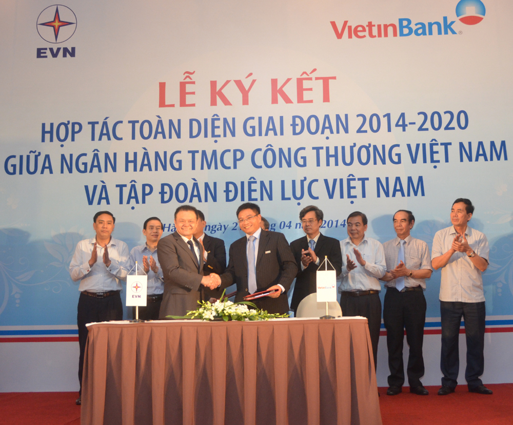 Chiều ngày 21/4, Tập đoàn Điện lực Việt Nam (EVN) và Ngân hàng TMCP Công Thương Việt Nam (Vietinbank) đã ký kết hợp tác chiến lược toàn diện giai đoạn 2014 – 2020.