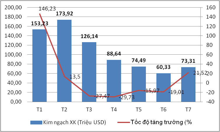 Tổng kim ngạch xuất khẩu | 73,31 | 21,52 | -31,31 | 749,78 | 11,77 | 100 |