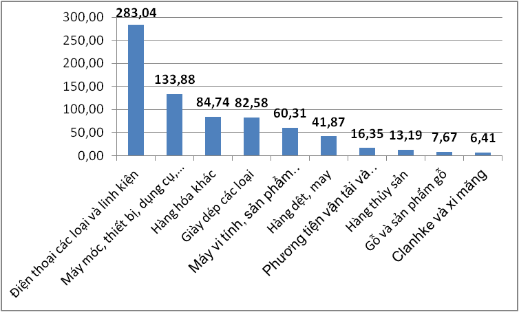 Biểu đồ: Nhóm các mặt hàng có kim ngạch xuất khẩu lớn nhất