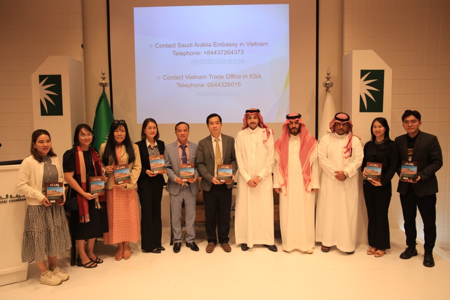 Lãnh đạo Phòng Thương mại Al Kharj, Phó Vụ trưởng Nguyễn Phúc Nam và đại diện đoàn công tác