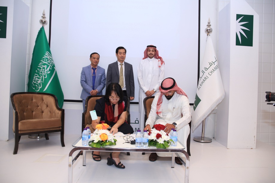 Bà Bùi Hồng Hạnh, Giám đốc công ty LEGENDARY VIETNAM CO., LTD ký thỏa thuận hợp tác với KHAM FACTORY, Al Kharj - Ả-rập Xê-út