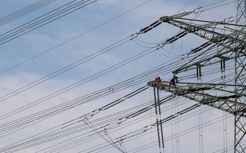 Công nhân điện lực lắp đặt đường dây điện cao thế mới ở Hanau, Đức, ngày 10/8/2020. (Ảnh: Reuters)