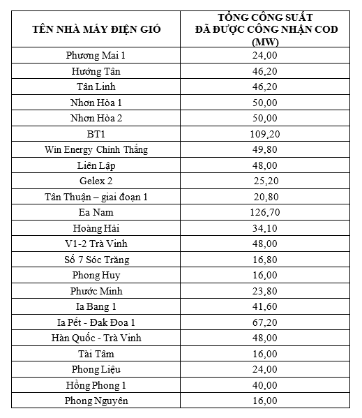 Theo thống kê của EVN đã có tổng cộng 106 nhà máy điện gió gửi văn bản và hồ sơ đăng ký chương trình đóng điện và hòa lưới, thử nghiệm, đề nghị công nhận vận hành Trang Chủ Game 33win com Mới Nhất (COD). Tổng công suất đăng ký thử nghiệm COD của 106 nhà máy điện gió này là 5.655,5 MW.