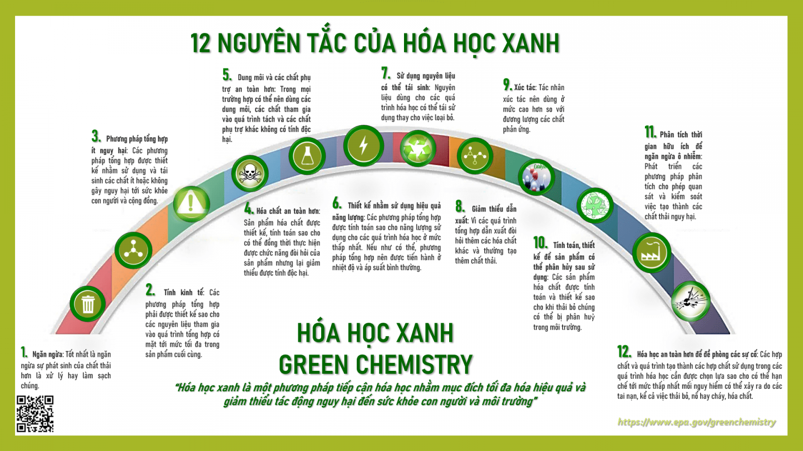 Áp dụng 12 nguyên tắc của Hóa học xanh do cơ quan “Cơ quan bảo vệ môi trường Hoa Kỳ”ban hành